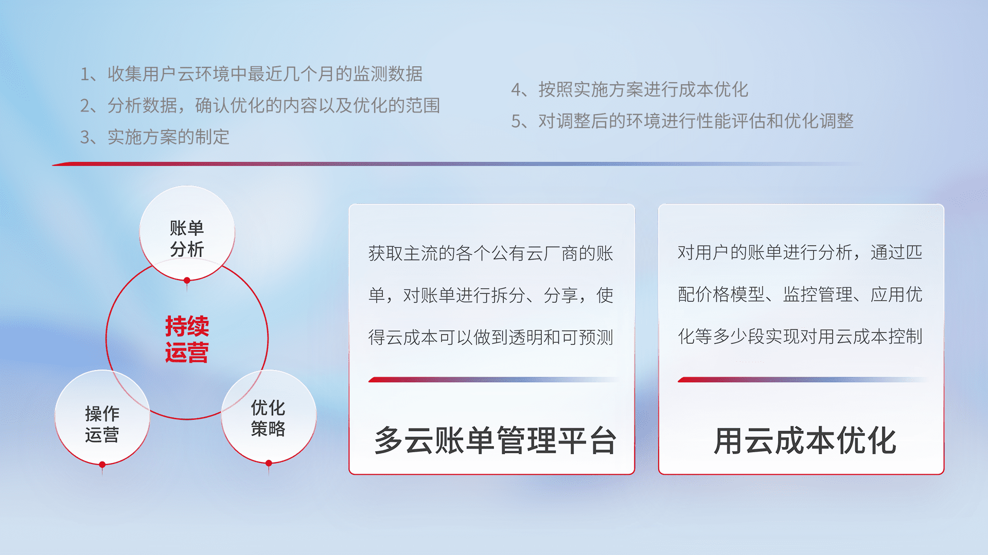 监控业务系统资源开销,,对资源的消耗精确计量,,,,实现费用的透明化管理,,,,不断提升资源使用率,,调整资源购买方式,,,,降低资源费用成本,,用云成本可预测、、、、用云费用可优化,,,,云资源配额有据可依。。